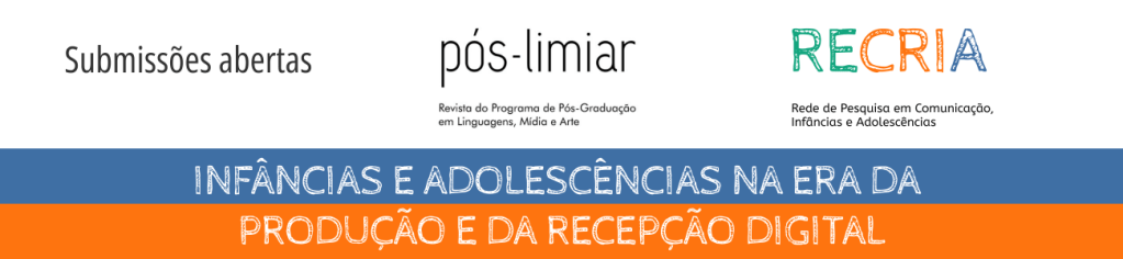 A revista Pós-Limiar está com chamada aberta para trabalhos a serem publicados no dossiê Infâncias e adolescências na era da produção e da recepção digital, organizado pelas pesquisadoras da RECRIA (Rede de Pesquisa em Comunicação, Infâncias e Adolescências) Maria Clara Monteiro (UFC/UFF), Lidia Marôpo (Instituto Politécnico de Setúbal e Centro Interdisciplinar de Ciências Sociais – Universidade Nova de Lisboa (CICS.NOVA) – Portugal) e Juliana Doretto (PUC-Campinas). Os artigos devem ser enviados até o dia 15 de novembro de 2022, para publicação em 2023. As regras de submissão estão no site da publicação.